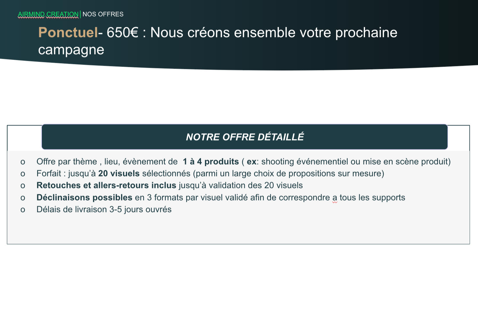 Création des images et vidéos prêtes à l’emploi.4. Livraison & Retouches